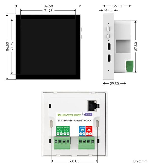 ESP32-P4 Smart 86 Box Development Board, Based on ESP32-P4 Controller with RISC-V 32-bit Dual-Core and Single-Core Processor, On-board 4” 720 x 720 Pixel Touch Display, 5-point Touch